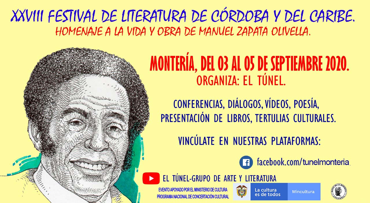 DEL 3 AL 5 DE SEPTIEMBRE DEL 2020. ORGANIZADO POR EL TÚNEL, CON EL APOYO DEL MINISTERIO DE CULTURA Y DEL BANCO DE LA REPÚBLICA. Enlace: https://www.facebook.com/tunelmonteria JUEVES 3 DE SEPTIEMBRE(a partir de las 3 p.m.) –Inauguración del XXVIII Festival de literatura de Córdoba y del Caribe, a cargo de Marcia Zumaqué, docente,…