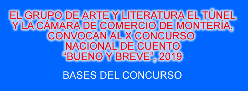 3- Los cuentos deben ser enviados a: “Concurso Nacional de Cuento Bueno y Breve. Asociación Cultural El Túnel, calle 14 A Nº 3 A – 39, barrio Buenavista, Montería, Colombia”.